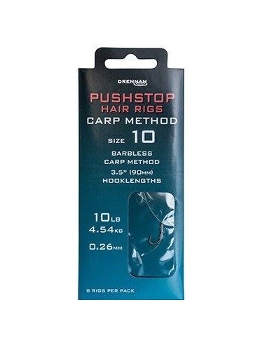 Anzuelo Montado Drennan Pushstops Hair Rigs 30 cm / carp method/ sin muerte / 8 u