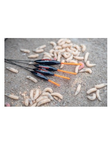 El flotador F1 Maggot se ha desarrollado para cubrir una amplia variedad de cebos, el vástago de carbono y la cerda hueca de 1,5 mm ofrecen el compromiso perfecto, ya que le permiten pescar "a través del agua" o "en el fondo". El perfil delgado del cuerpo ofrece poca resistencia y la punta hueca muestra las picaduras más sensibles.