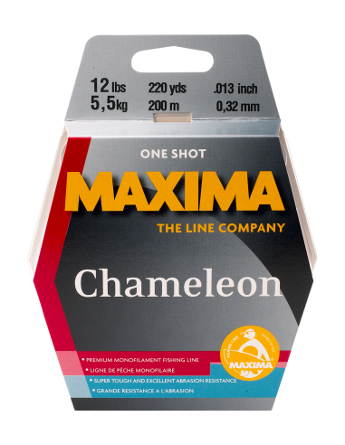 Ninguna otra línea puede igualar la fuerza de Maxima Chameleon. Durante décadas, los pescadores de todo el mundo han confiado en Maxima Chameleon para ofrecer una resistencia a la abrasión, nudo, resistencia a la tracción y tenacidad incomparables cuando la lucha continúa. Al igual que su homónimo, Chameleon, esta línea tiene una formulación única que le permite cambiar los tonos de color para que coincida con el agua circundante y las condiciones de luz.