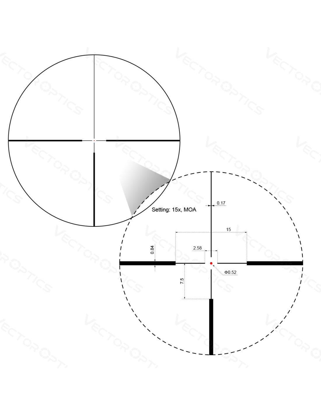 Distancia entre la parte central de la torreta y el anillo de potencia: 59 mm (2,3 pulgadas)